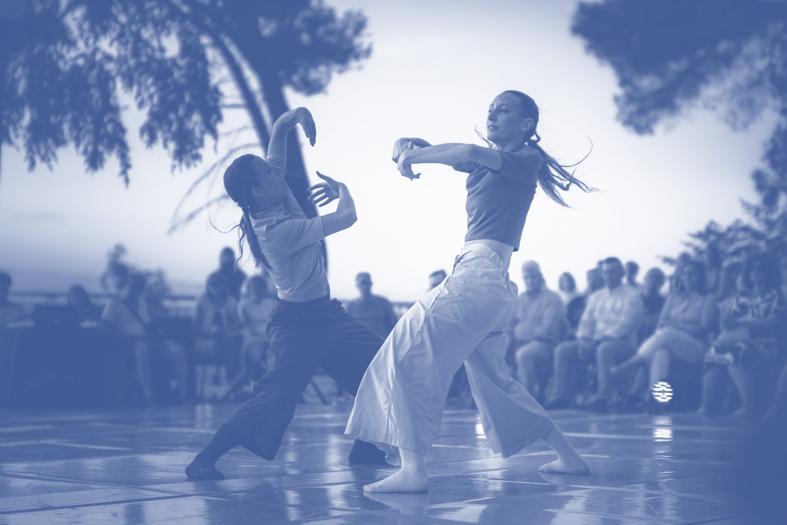 «Rhythm is a choreographic work that transcends mere physical representation to evoke a profound exploration of the relationship between space, movement, pattern, and synchronization between the two performers on stage. Through a visual and kinetic narrative, the choreography seeks to capture the essence of human existence, where rhythms and dynamics intertwine as a living metaphor for life itself. The piece unfolds like a tapestry of movement and stillness, where acceleration and deceleration alternate in a constant dialogue between the performers. Harmony and discord intersect, creating a dynamic balance that reflects the complexity of human relationships. Synchronization and desynchronization become a bodily language that expresses both connection and disconnection between the two performers, while space becomes a living element that envelops and separates them. The choreography aims to create a universe where rhythm and dynamics become a form of communication that transcends words. Through this work, the audience is invited to reflect on the nature of rhythm and its influence on our lives and relationships, and to experience the beauty and complexity of human existence through movement and dance».